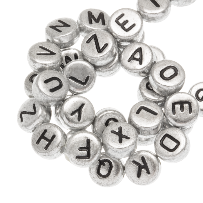 Acryl Buchstabenperlen Mischung (7 x 3.5 mm) Silver-Black (200 Stück)