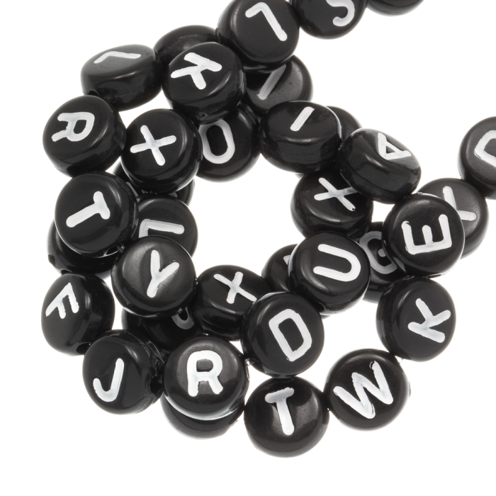 Acryl Buchstabenperlen Mischung (7 x 4 mm) Black-White (200 Stück)