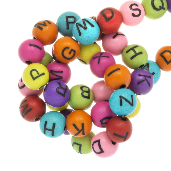 Wunderschöne Buchstabenperlen aus Acryl. Mit Buchstabenperlen können Sie ganz einfach trendigen und personalisierten Schmuck kreieren. Diese runden Buchstabenperlen sind eine hervorragende Ergänzung für Ihre Armbänder und Halsketten.
