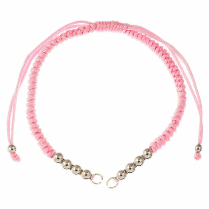 Armband DIY- Geflochtene Nylonschnur mit Metallperlen Verstellbar (26 cm) Pink - Altsilber (1 Stück)
