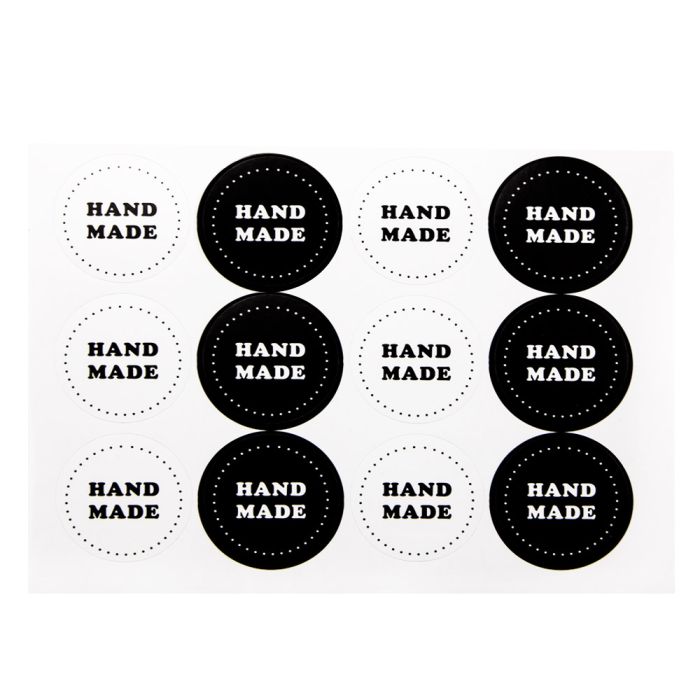 Aufkleberbogen Runde Aufkleber - Handmade (3.5 cm) Black-White (12 Aufkleber)
