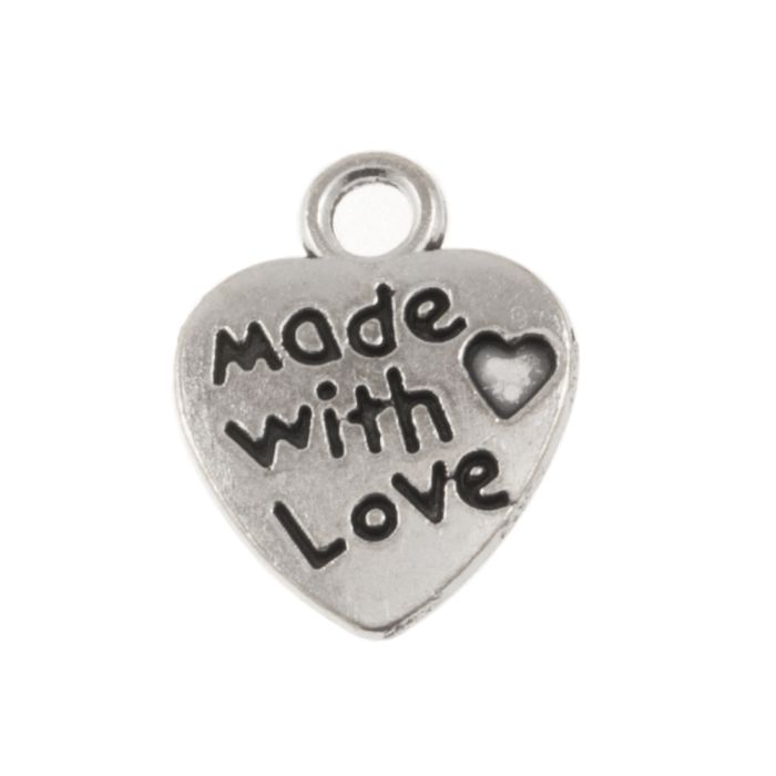 Charm Herz Made with Love (12 x 10 x 1 mm) Altsilber (25 Stück)