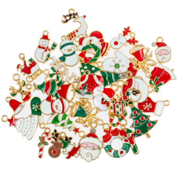 Charm Mischung Emaille Weihnachten (12 - 27 x 7.5 - 19 x 1- 3 mm) Gold (38 Stück)