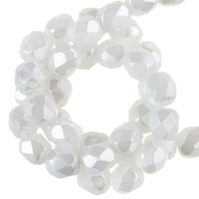 DQ Feuerpolierte Facettperlen (6 mm) Chalk White Shimmer (24 Stück)