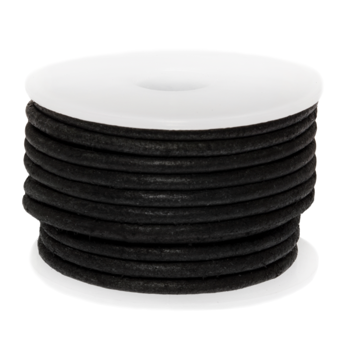 DQ Lederband Rund Vintage (2 mm) Black (5 Meter)