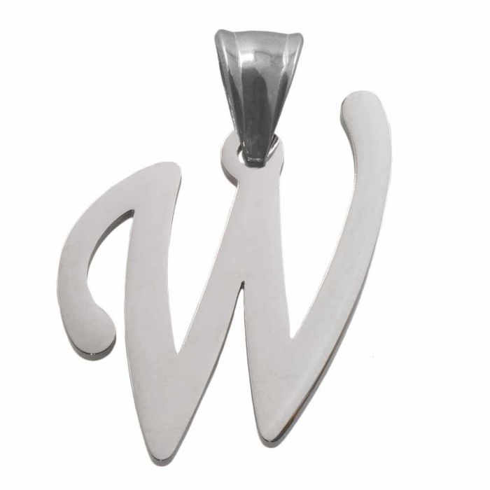 Edelstahl Buchstabenanhänger W (33 x 22 x 2 mm) Altsilber (1 Stück)