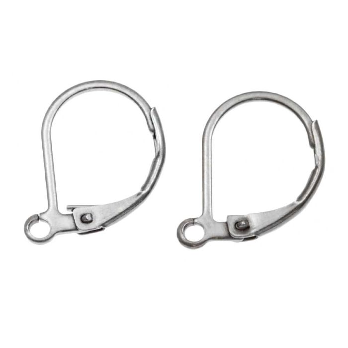 Edelstahl Ohrhänger mit Klappverschluss (15 x 10 mm) Altsilber (4 Stück)