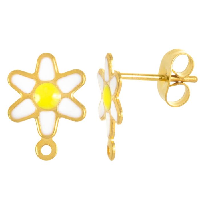 Edelstahl Ohrstecker Emaille Blume mit Verschluss (12.5 x 9 mm) White-Gold (2 Stück)