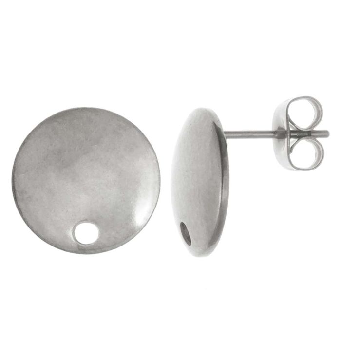 Edelstahl Ohrstecker Flach Rund (10 x 2 mm) Altsilber (4 Stück)