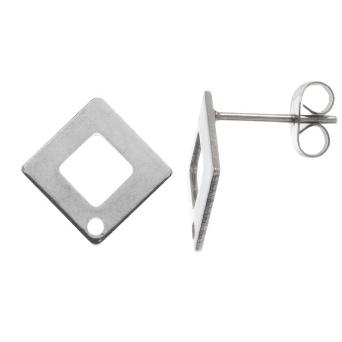 Edelstahl Ohrstecker mit Verschluss (14 x 14 mm) Altsilber (4 Stück)