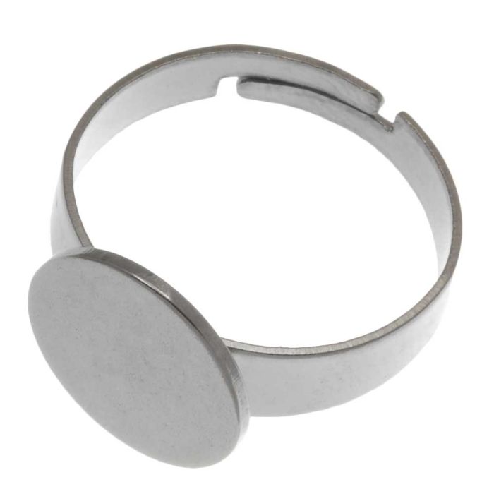 Edelstahl Verstellbarer Ring (Fassung 12 mm) Altsilber (5 Stück)