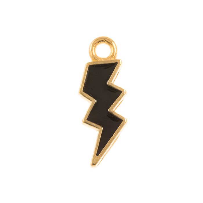 Emaille Charm Blitz (20 x 7 x 1.5 mm) Black-Gold (5 Stück)