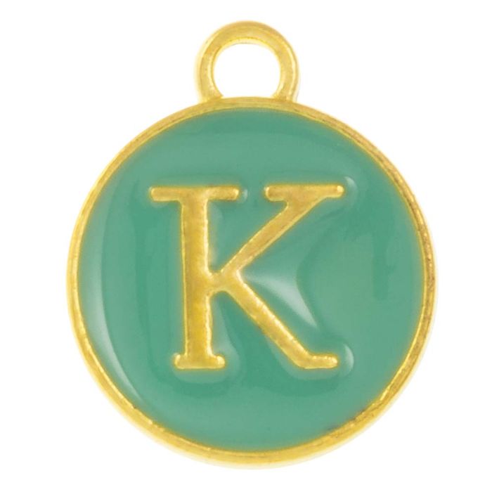 Emaille Charm Buchstabe K (14 x 12 x 2 mm) Turquoise (1 Stück)