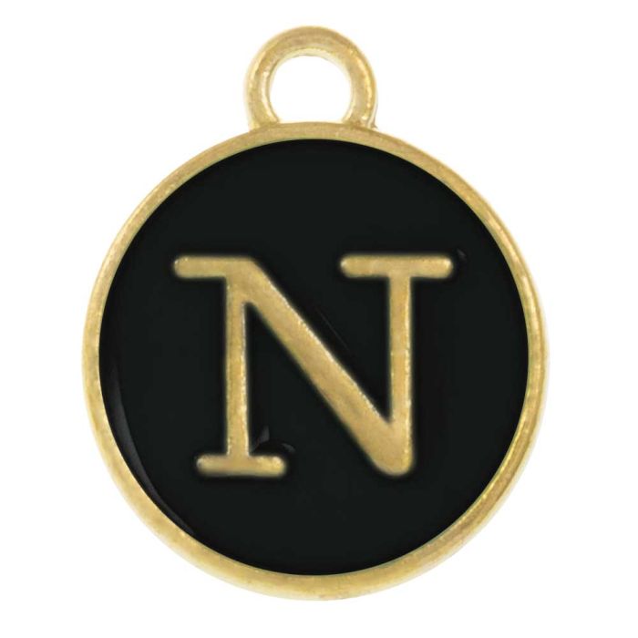 Emaille Charm Buchstabe N (14 x 12 x 2 mm) Black (1 Stück)