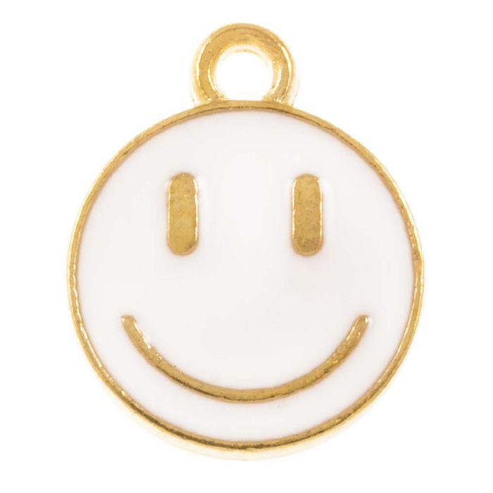Emaille Charm Smiley (14.5 x 12 x 1.5 mm) White (5 Stück)