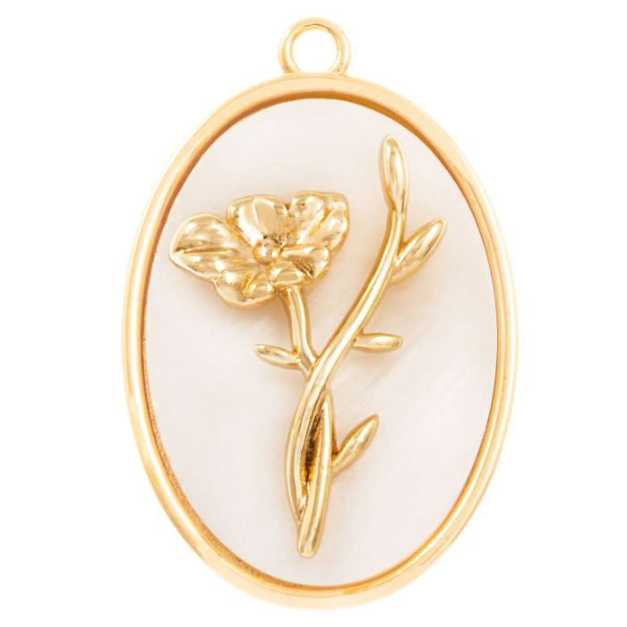 Geburtsblume Pendant (August / Mohn) Perlmutt - 18K Gold Plated (27 x 18 mm) 1 Stück