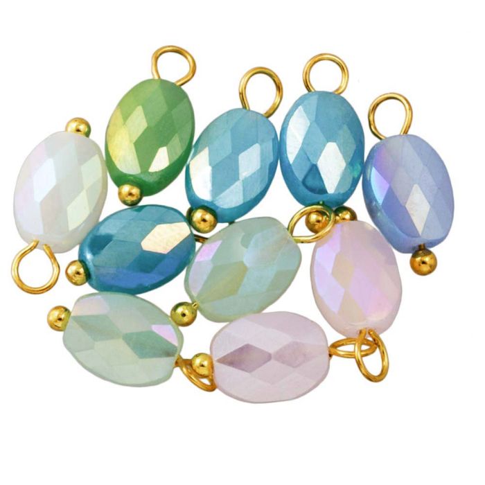 Glas Charm Mischung (13 - 14 x 6 - 6.5 x 4 - 4.5 mm) Crystal Turquoise-Gold (10 Stück)