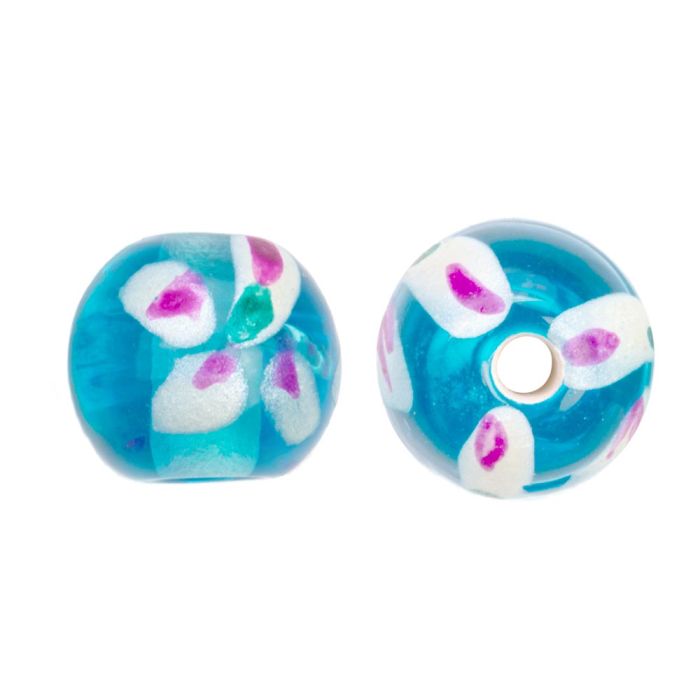 Glasperlen Lampwork Blume (8 x 9 mm) Aqua Blue (5 Stück)