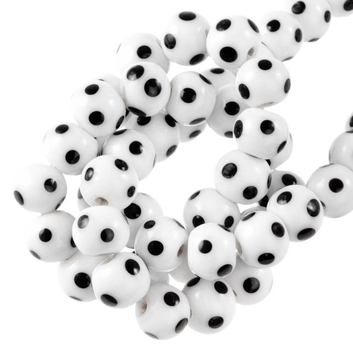 Glasperlen Lampwork Dots (8 x 9 mm) White (25 Stück)