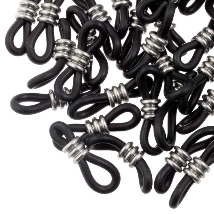 Gummischlaufen für Brillen mit Edelstahl (20 x 6 mm) Black - Altsilber (25 Stück)