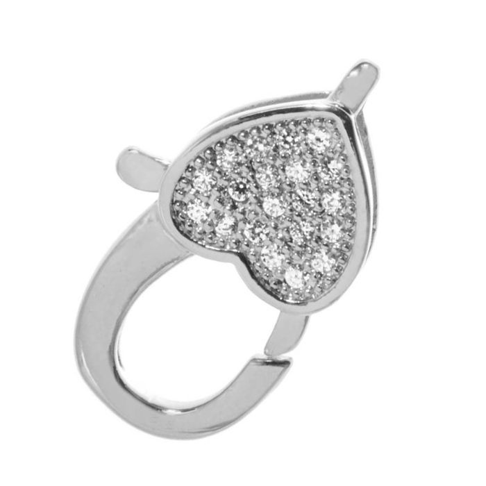 Karabinerverschluss Herz Zirkonia (17 x 10 x 5 mm) Altsilber (1 Stück)