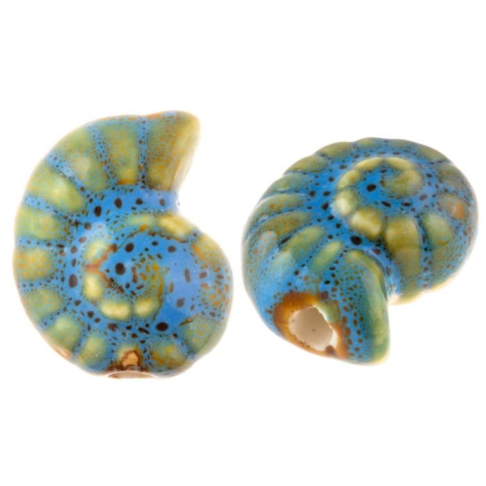 Keramikperlen Muschel Schnecke (17 x 21 x 10 mm) Mosaic Blue (3 Stück)