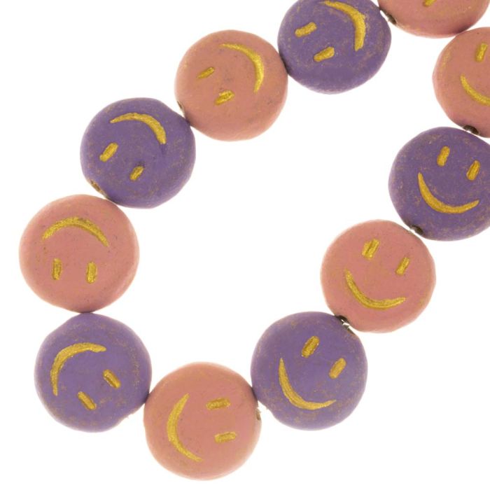 Keramikperlen Smiley (17 x 6 mm) Pastel Mix (11 Stück)