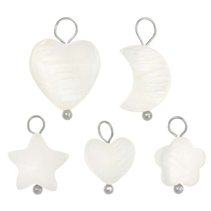 Muschel Charm Mischung (13 - 16.5 x 8 - 12.5 x 2.5 - 3 mm) White - Silber (25 Stück)