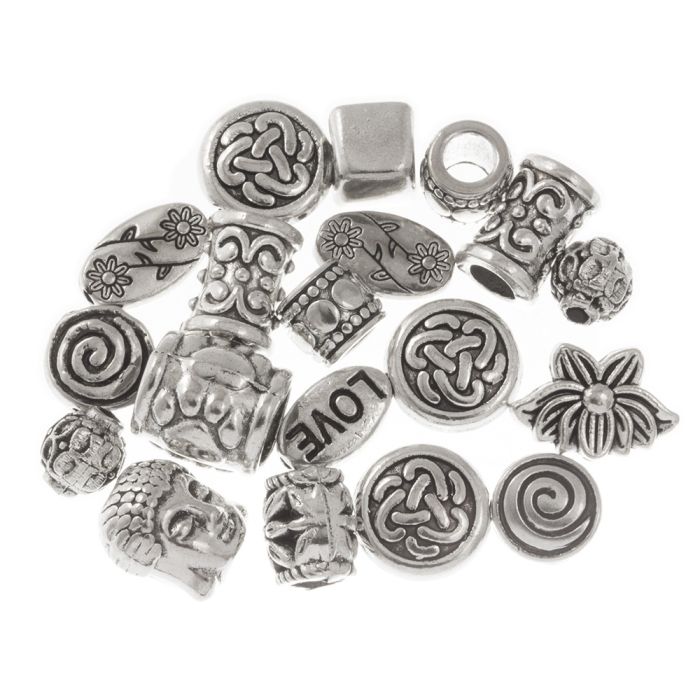 Perlen Set - Tibetanische Metallperlen (Altsilber) 15 Gramm