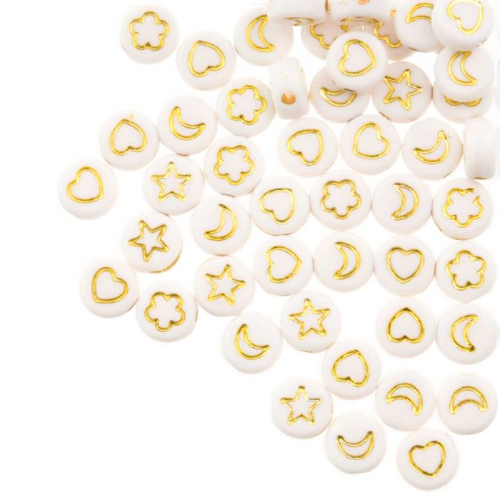 Perlenmischung - Acrylperlen (7 x 3.5 mm) White-Gold (50 Stück)