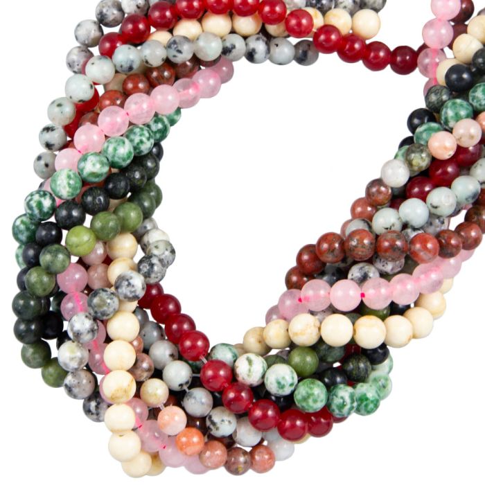 Perlenmischung - Naturstein Perlen (6 mm) Mixed Stones (10 Stränge)