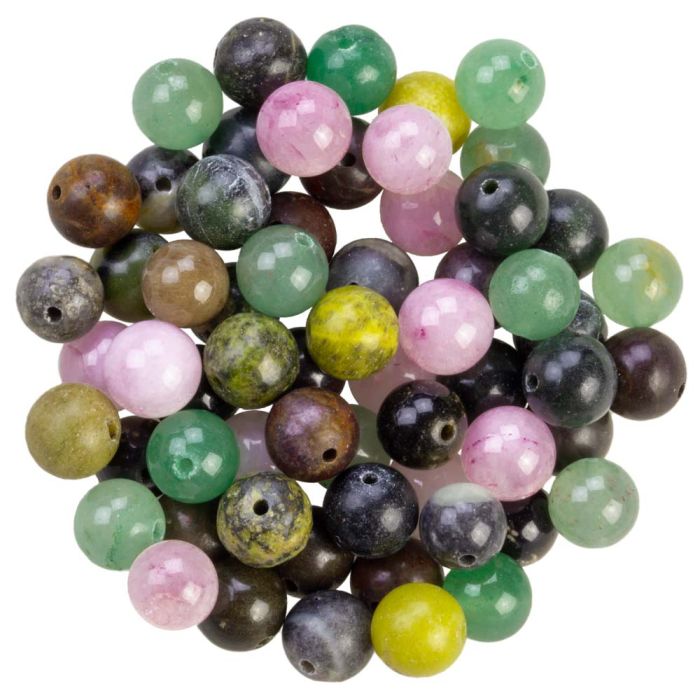 Perlenmischung - Naturstein Perlen (8 mm) Mixed Stone (100 Gramm / ca. 120 Stück)