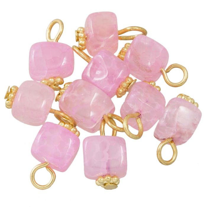 Perlrosa Achat Charm Würfel (14 - 16 x 7 - 8 x 6 - 7.5 mm) Gold (10 Stück)