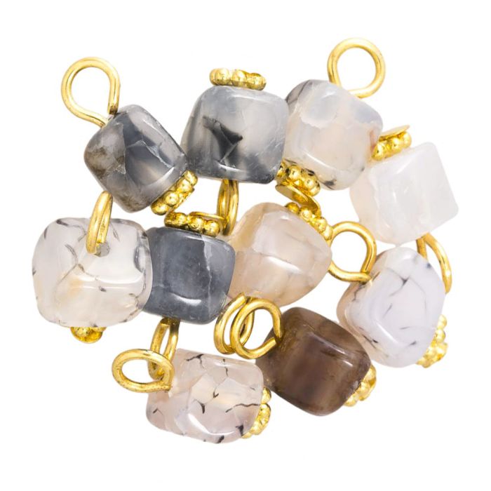Rauchgrauer Achat Charm Würfel (14 - 16 x 7 - 8 x 6 - 7.5 mm) Gold (10 Stück)