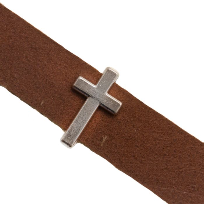 Schiebeperle Kreuz klein (Innenmaß 10 x 2mm) Altsilber (10 Stück)