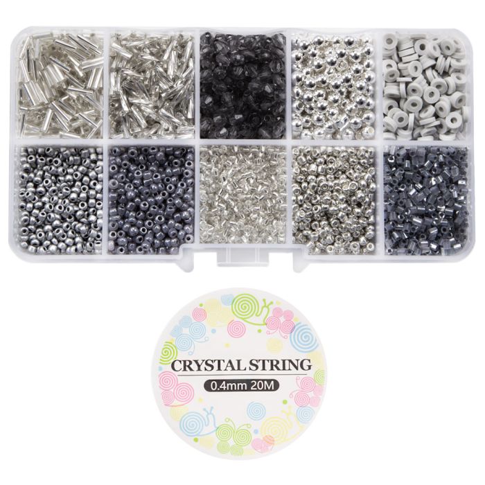Schmuck Bastelset - Glas-, Polymer- & Acrylperlen (verschiedene Grössen) Mix Color Grey
