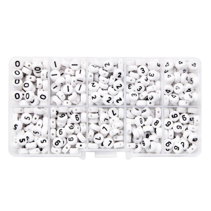 Sortierkasten - Acryl Zahlenperlen ( 7 x 4 mm) White-Black (50 Perlen pro Zahl)