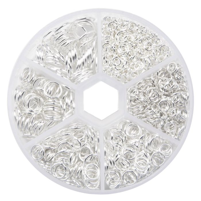 Sortierkasten - Biegeringe (4 - 10 x 0.6 - 1 mm) Silber (1500 Stück)