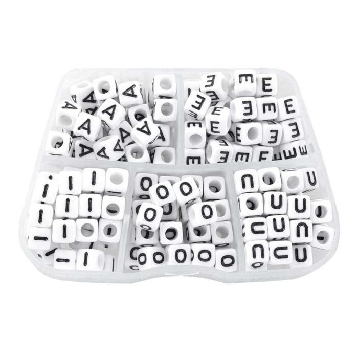 Sortierkasten - Buchstabenperlen Vokale Grosses Loch (6 x 6 mm) White-Black (35 Perlen pro Buchstabe)