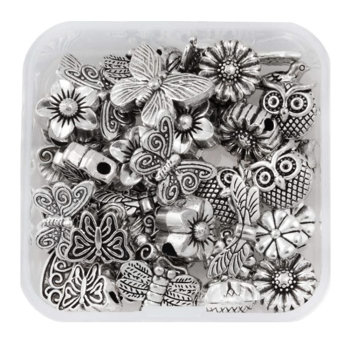 Sortierkasten - Metallperlen (7 - 19 mm) Altsilber (48 Stück)