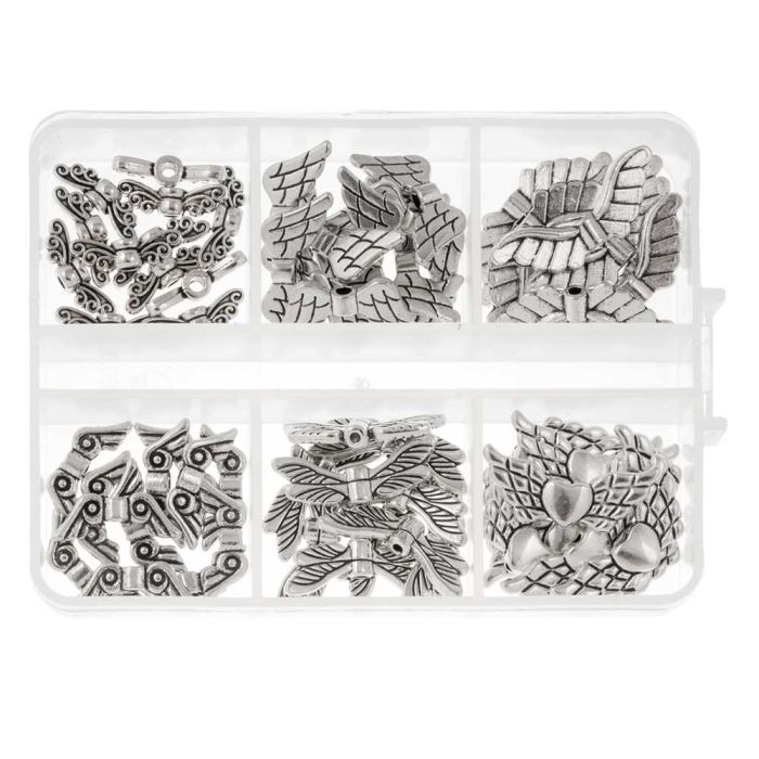 Sortierkasten - Metallperlen Flügel (14 - 24 mm) Altsilber (60 Stück)
