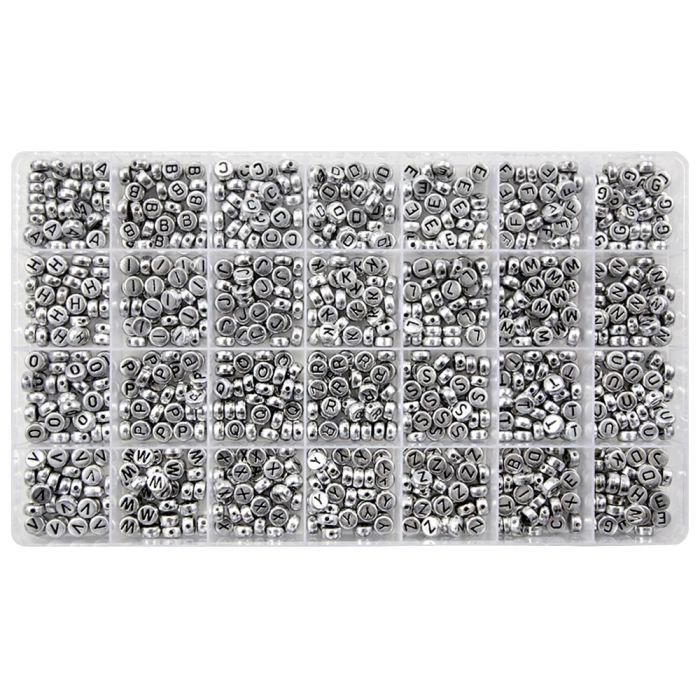 Sortierkasten XL - Buchstabenperlen A/Z (7 x 3.5 mm) Silver-Black (35 Perlen pro Buchstabe)