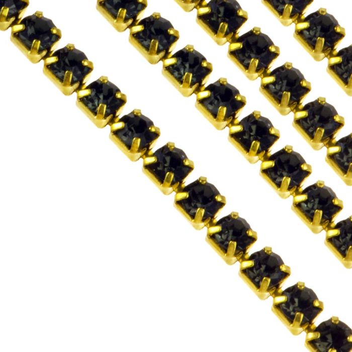 Strasskette (2 mm) Gold - Black Diamond (2 Meter)