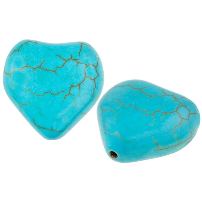 Türkis Stein Perlen Herz (17 x 17 x 8 mm) Blue Turquoise (5 Stück)